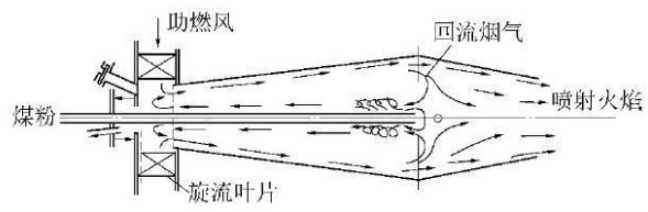1.4 煤粉燃燒器 煤粉燃燒器是煤粉鍋爐燃燒系統中的關鍵設備。煤粉氣流的著火過程、爐膛中的空氣動力和燃燒工況,主要由燃燒器的結構和爐膛的布置方式決定。因此,燃燒器的性能對煤粉燃燒設備運行的可靠性和經濟性起到主要的作用。 工業鍋爐煤粉燃燒器大多是借鑒電站鍋爐燃燒器的設計,在此基礎上進行改造后應用于煤粉工業鍋爐領域。煤粉燃燒器的形式很多,就基本原理來分,可分為旋流式燃燒器和直流式燃燒器2 大類。旋流式煤粉燃燒器是利用其能使氣流產生旋轉的導向結構,使旋轉氣流形成有利于著火的回流區。按照產生旋轉氣流方法的不同,旋流式燃燒器可分為蝸殼式、軸向葉片式和切向葉片式 3 類,不同的組合形成了多種不同類型的旋流煤粉燃燒器。無論哪種結構的旋流煤粉燃燒器,其產生的旋轉氣流,在氣流的出口形狀、形成的回流區大小、回流強度以及氣流混合特性等方面,都應能保證煤粉穩定著火與燃燒的要求。直流式燃燒器噴出的一、二次風都是不旋轉的直流射流,噴口一般都是狹長形。 煤粉工業鍋爐停爐、啟爐的頻率要遠高于電站鍋爐,燃燒器要具備迅速著火的特點;相比電站鍋爐,煤粉工業鍋爐還有負荷調節范圍寬且占地面積小的特點。綜合這些因素,將電站鍋爐煤粉燃燒器直接應用于煤粉工業鍋爐中存在諸多問題。國內小容量直噴煤粉燃燒器主要存在初始點火困難和負荷調節范圍窄的問題。若煤粉工業鍋爐低于60%負荷運行,極易形成脫火,進而存在發生爆燃事故的安全隱患。為了解決煤粉燃燒不穩定的問題,可采取在燃燒器周圍敷設衛燃帶的措施,但此措施在爐膛結渣(焦)、傳熱能力下降時存在發生爆燃、爐膛溫度和排煙溫度過高的安全隱患。在煤粉工業鍋爐領域,煤炭科學技術研究院有限公司借鑒Dr.schoppe燃燒器的燃燒組織原理設計的中心逆噴雙錐燃燒器(圖3) 在煤粉工業鍋爐燃燒器領域取得突破。相比其他旋流式燃燒器,此燃燒器沒有單獨設立回流室,僅靠組織流場形成回流區,體積小,且在回流區內,煤粉快速升溫至1000℃,形成了高溫空氣燃燒。結合濃相送粉技術,燃燒器同時具備迅速點火、負荷調節范圍寬,火焰穩定和低氮的優點,為煤粉工業鍋爐安全可靠的運行提供了技術支撐。