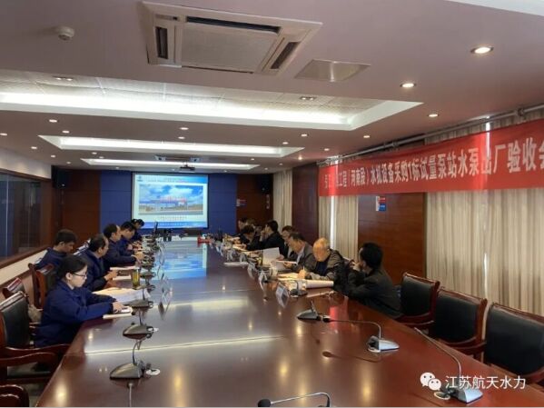 2021年4月14日,河南省引江濟淮工程有限公司在江蘇航天水力設備有限公司召開了引江濟淮工程(河南段)水機設備采購1標試量泵站項目驗收專題會。