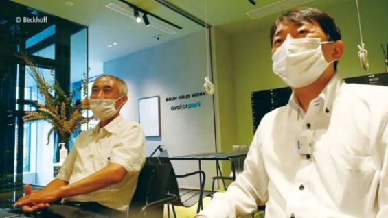尤海姆顧問橫山先生(左)和尤海姆中央工廠總經理松本先生采用倍福技術將糕點師的年輪蛋糕專業(yè)知識整合到軟件中。