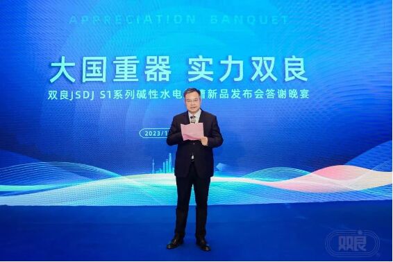 ▲ 雙良集團董事局副主席江榮方介紹雙良JSDJ S1系列堿性水電解槽新品