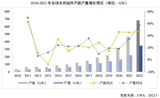 從生產規模來看,2022年我國光伏組件產能、產量分別達551.9吉瓦、294.7吉瓦,同比分別增長53.7%、62.1%,產業整體規模進一步擴大。